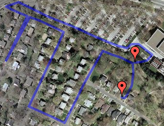 By the time I got home, I was absolutely convinced that the next order of business was to look for the HOWTOs on popping locks with innocuous household objects. I had a clever hack, and it was going to save me time on a daily basis; that’s my favorite kind.  But just for the heck of it, and partially to prove to myself exactly how clever my clever hack would be, I pulled up the maps to get the exact distances I was saving.