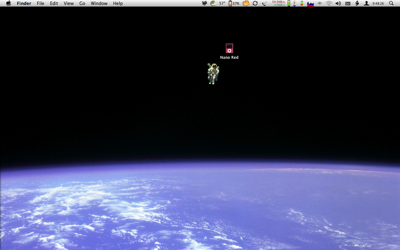Felicitous icon placement Posted on March 15, 2008 by Jeff Porten I just love where OS X superimposed my Nano over my background picture, like it’s the Death Star of MP3s. Thumbnail links to full-size.