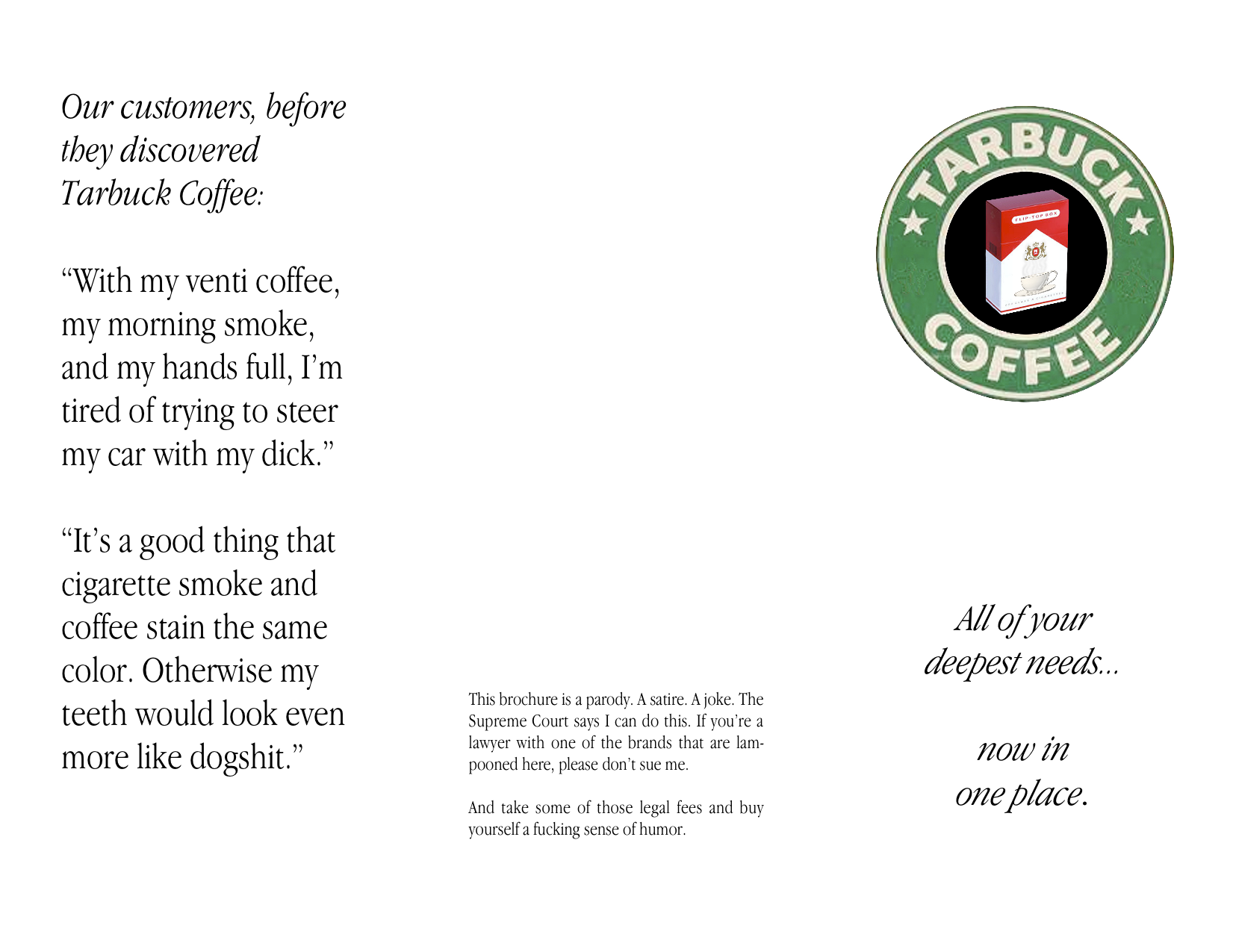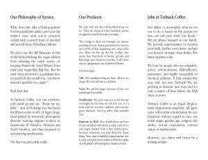 Tarbuck Coffee Posted on July 18, 2010 by Jeff Porten A little something I wrote a long time ago. Posting it here mainly so I don’t have to go looking for it again—Spotlight seems to have trouble finding it for some reason. Tarbuck brochure (PDF)